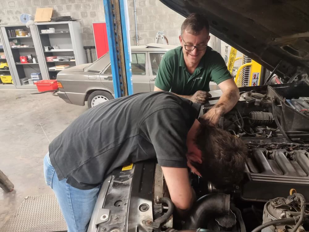 De centrale ventilator maakte een piepend geluid. Af en toe starte hij niet. Het is een helse job want de auto moet heel ver uit elkaar. Met de nodige uren werk is het toch gelukt.